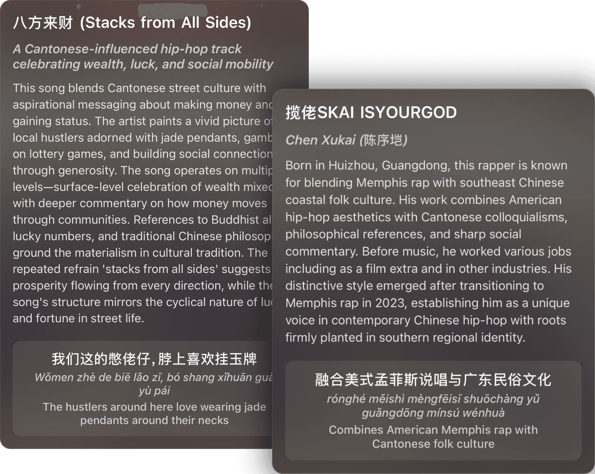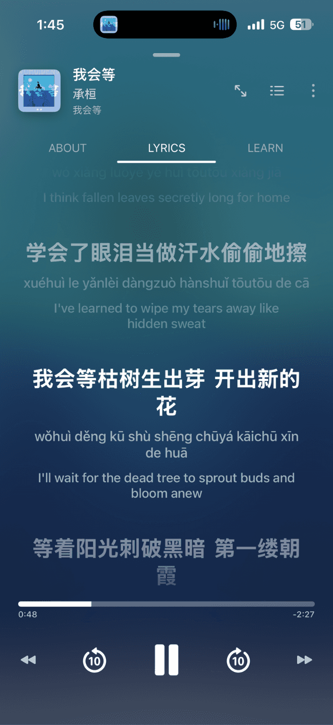 Zhiyin (知音) turns Chinese music into language lessons – with synced lyrics, pinyin, translations, grammar guides, flash cards and more